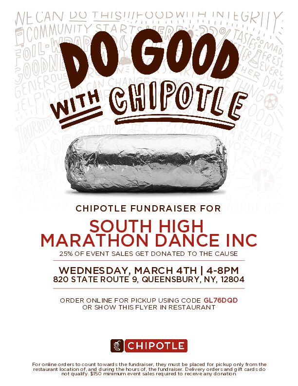 Join us at Chipotle on Wednesday, March 4th, and gear up for the Marathon Dance with burritos!