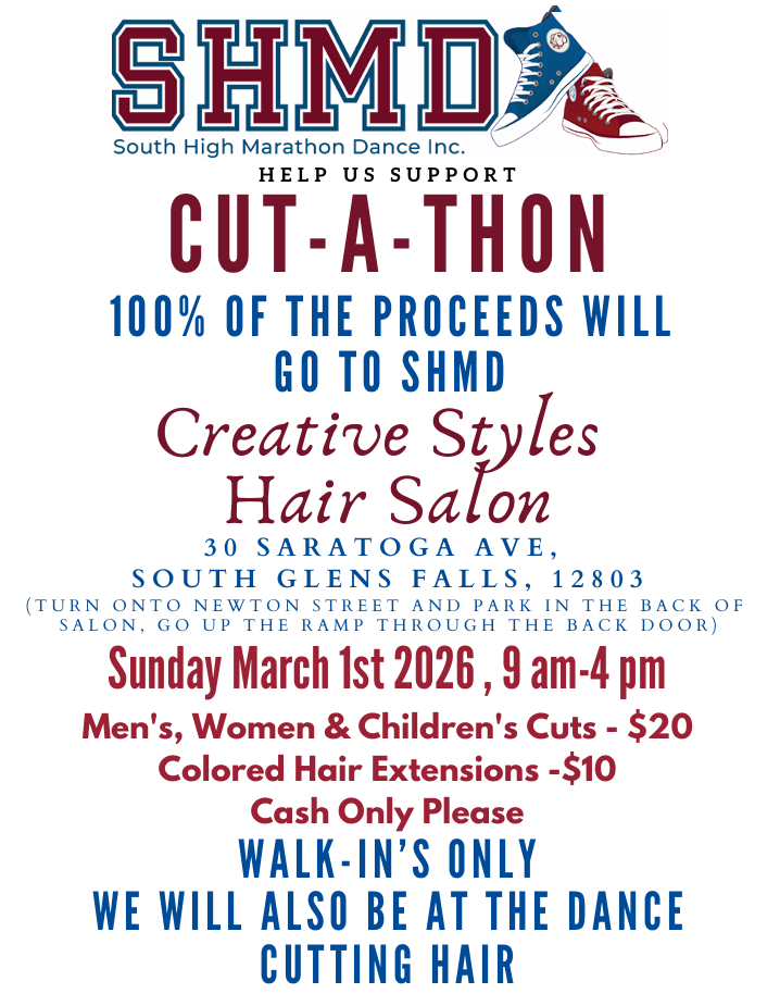 Enjoy a stylish cut at Creative Styles' Cut-A-Thon! March 1st from 9:00 AM - 4:00 PM at 30 Saratoga Ave, South Glens Falls, 12803!