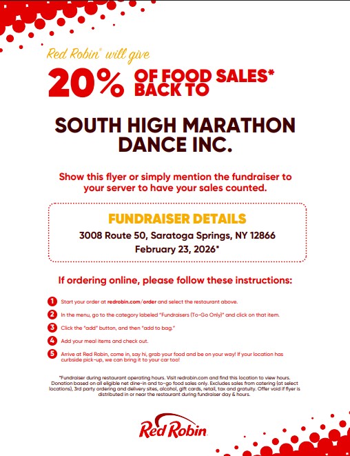 • Dine In: Show the fundraiser flyer from this calendar event or a SHMD social media post to your server, and 20% of your meal total will be donated to SHMD 2026.